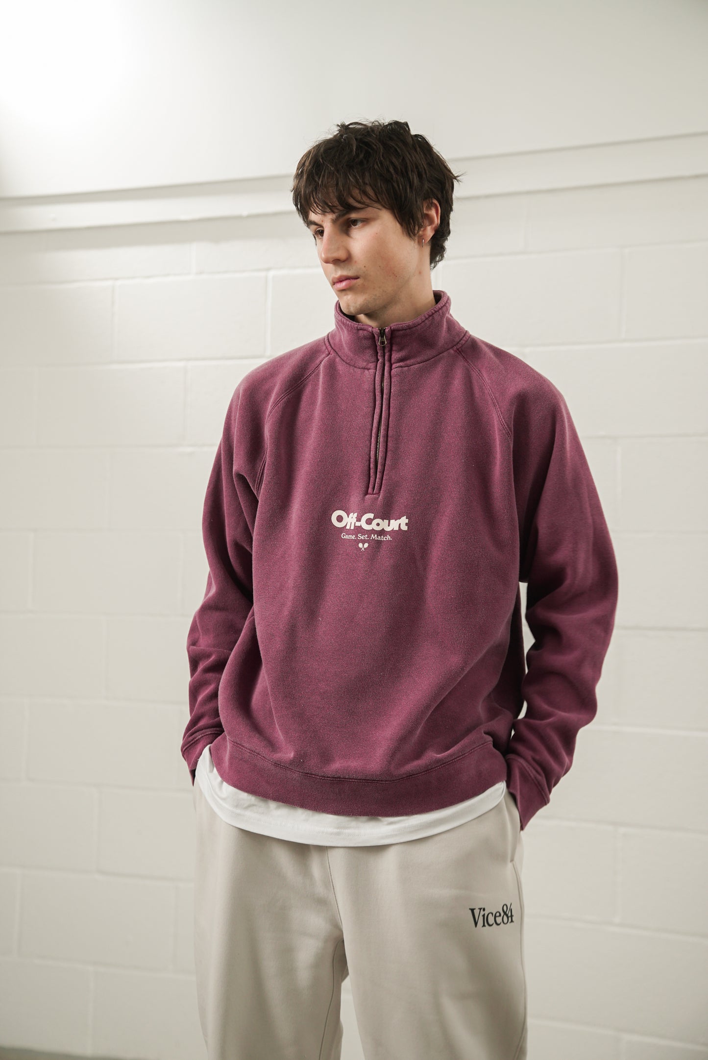 Vice 84 'Off-Court GSM' Washed 1/4 Zip Sweater - Maroon