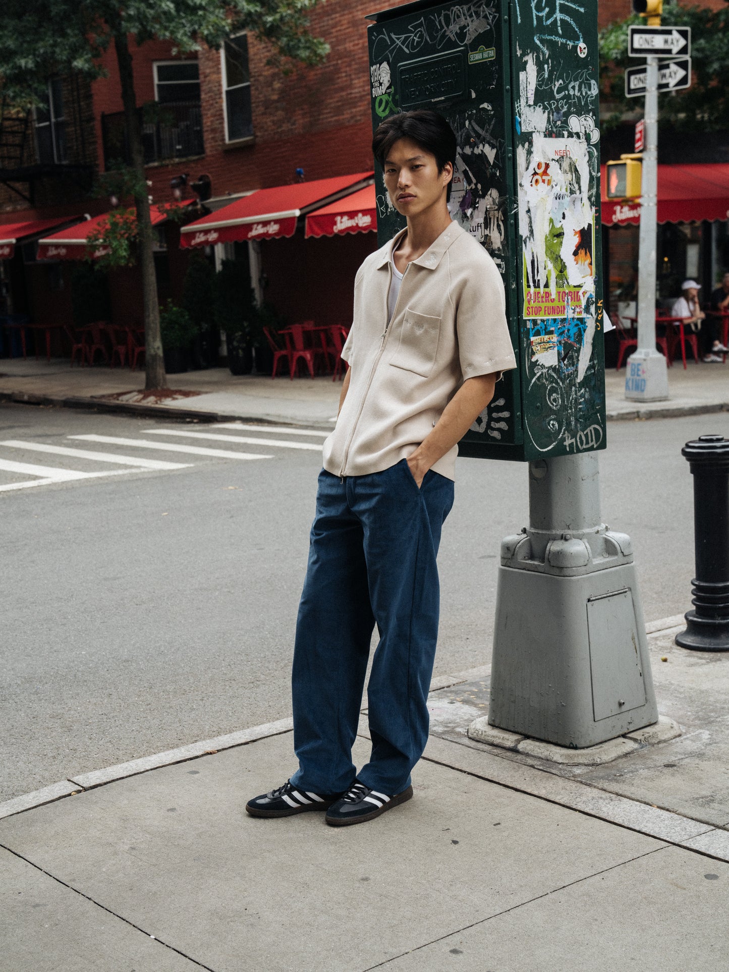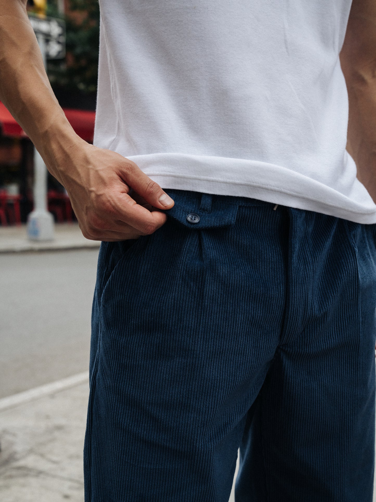bound Wide Leg Corduroy Trousers - Dallas Blue
