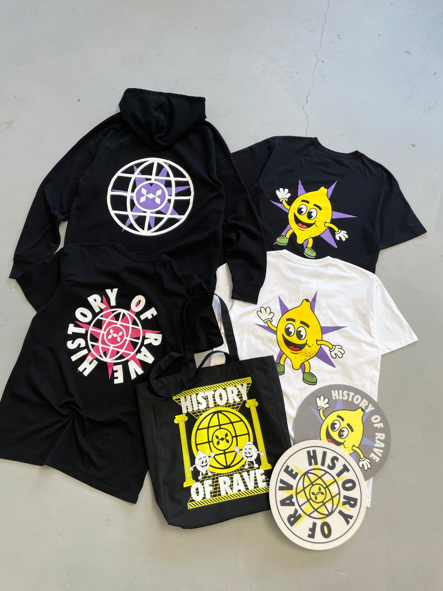 Our latest collaboration to the store with our musical endeavours and roots through independent culture. We've known DJ Eats Everything a number of years and are extremely happy to bring you History Of Rave, his new party & brand. With Glastonbury takeovers, we've worked with him to make the ultimate rave pieces!