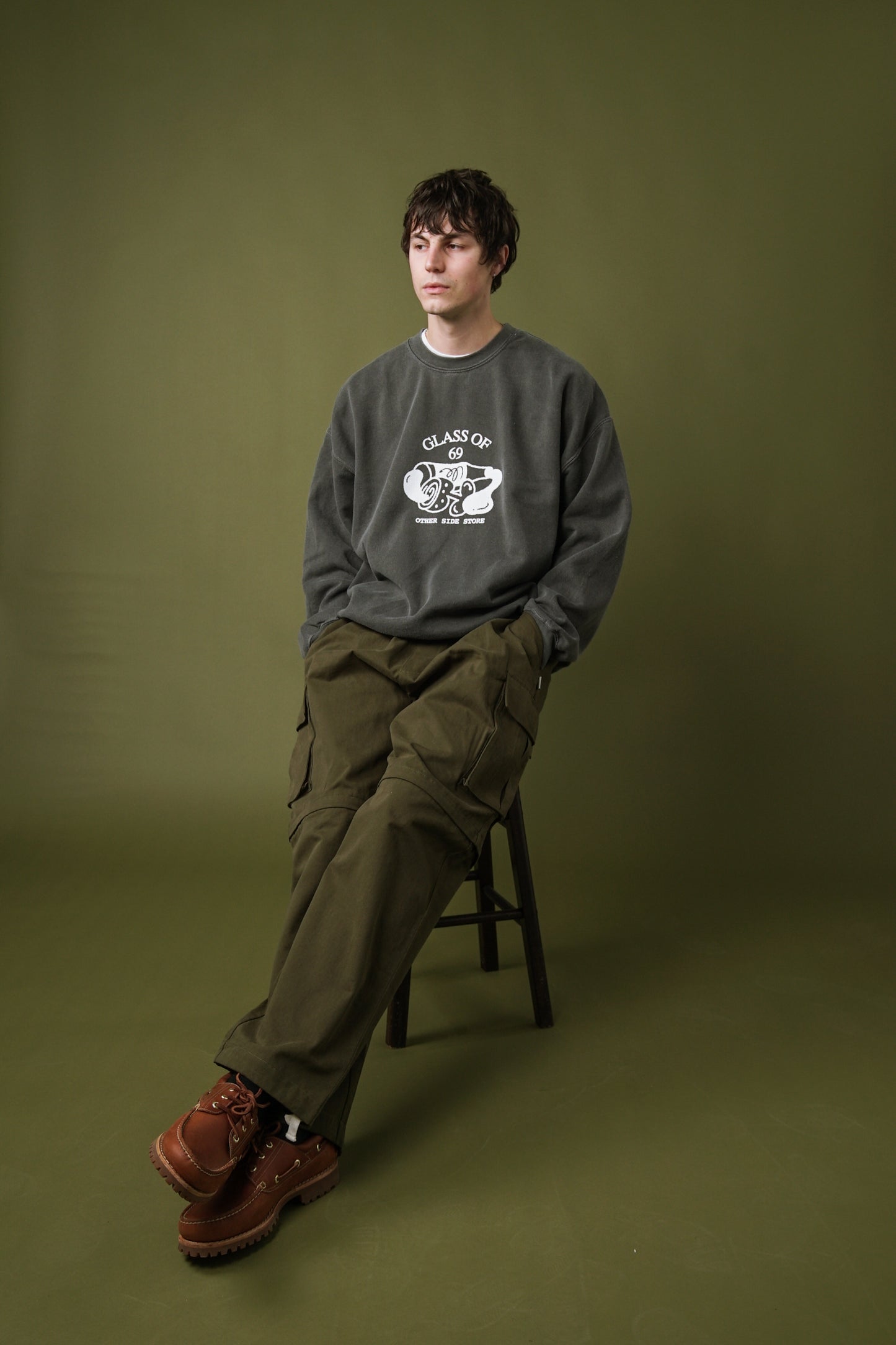 FABRIC: CUSTOM VINTAGE WASHED WITH OUR OWN PIGMENT DYE TECHNIQUE. 80% COTTON 20% POLY, 305GSM. VINTAGE WASHED ITEMS HAVE INTENDED PILLING / RUSTIC LOOK AND EFFECT, TO BE EXPECTED ON THIS STYLE.