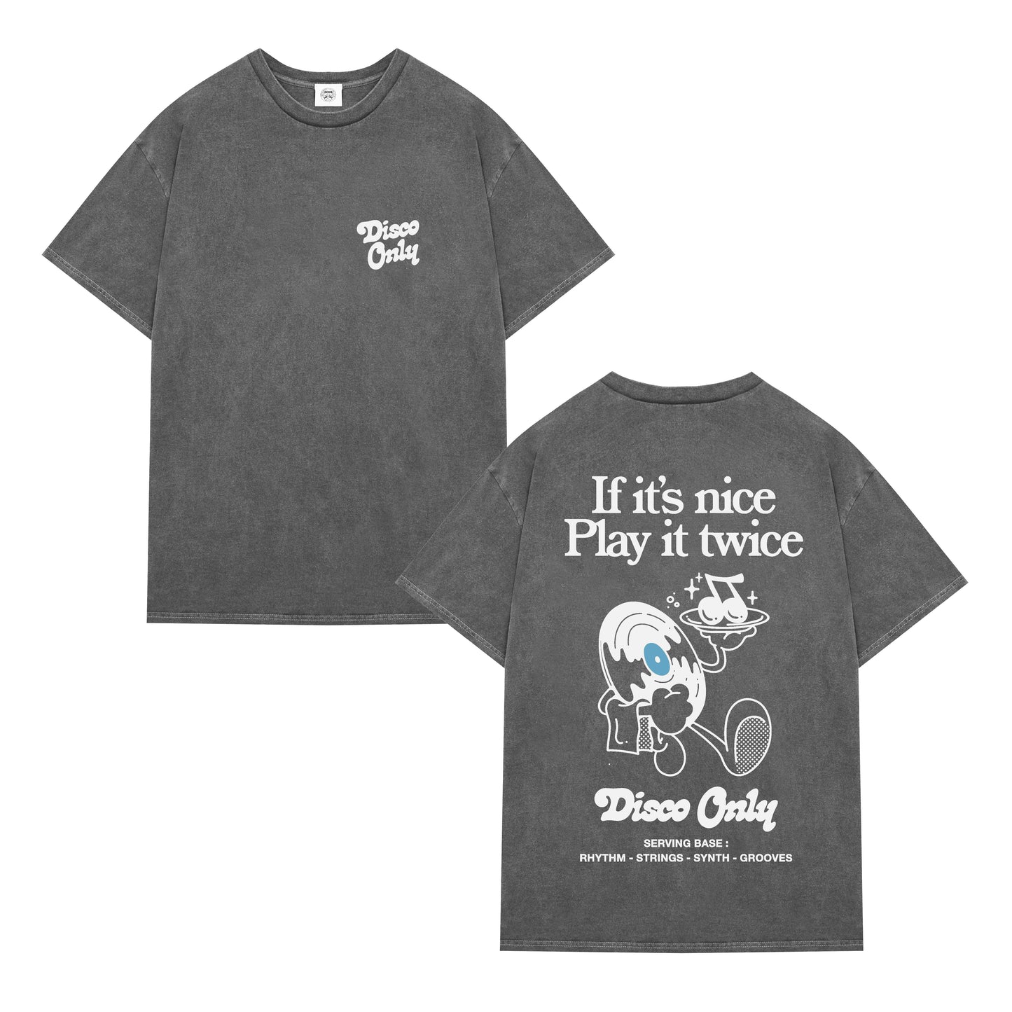 DISCO ONLY 'Play It Twice V2' Tee - Washed Black