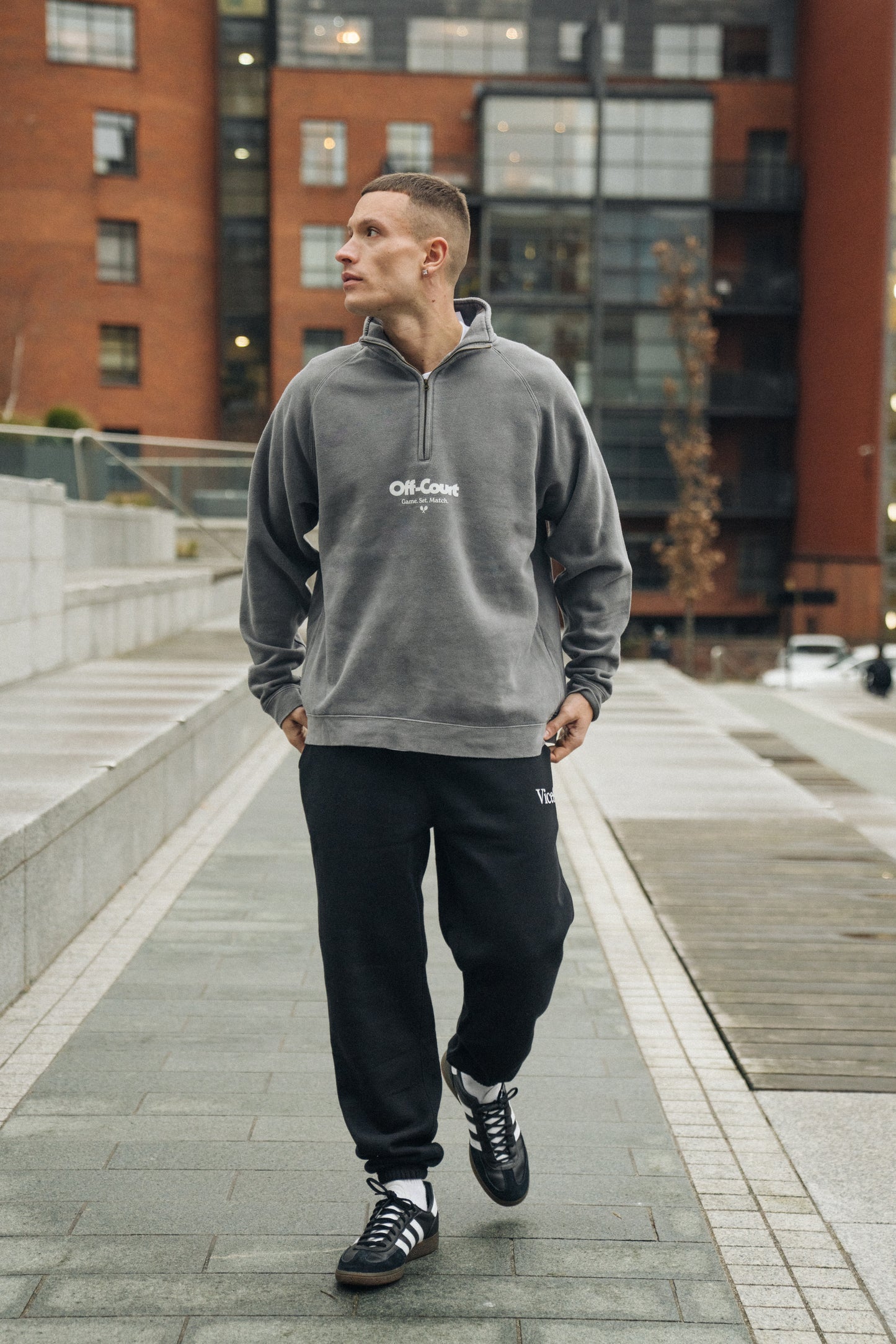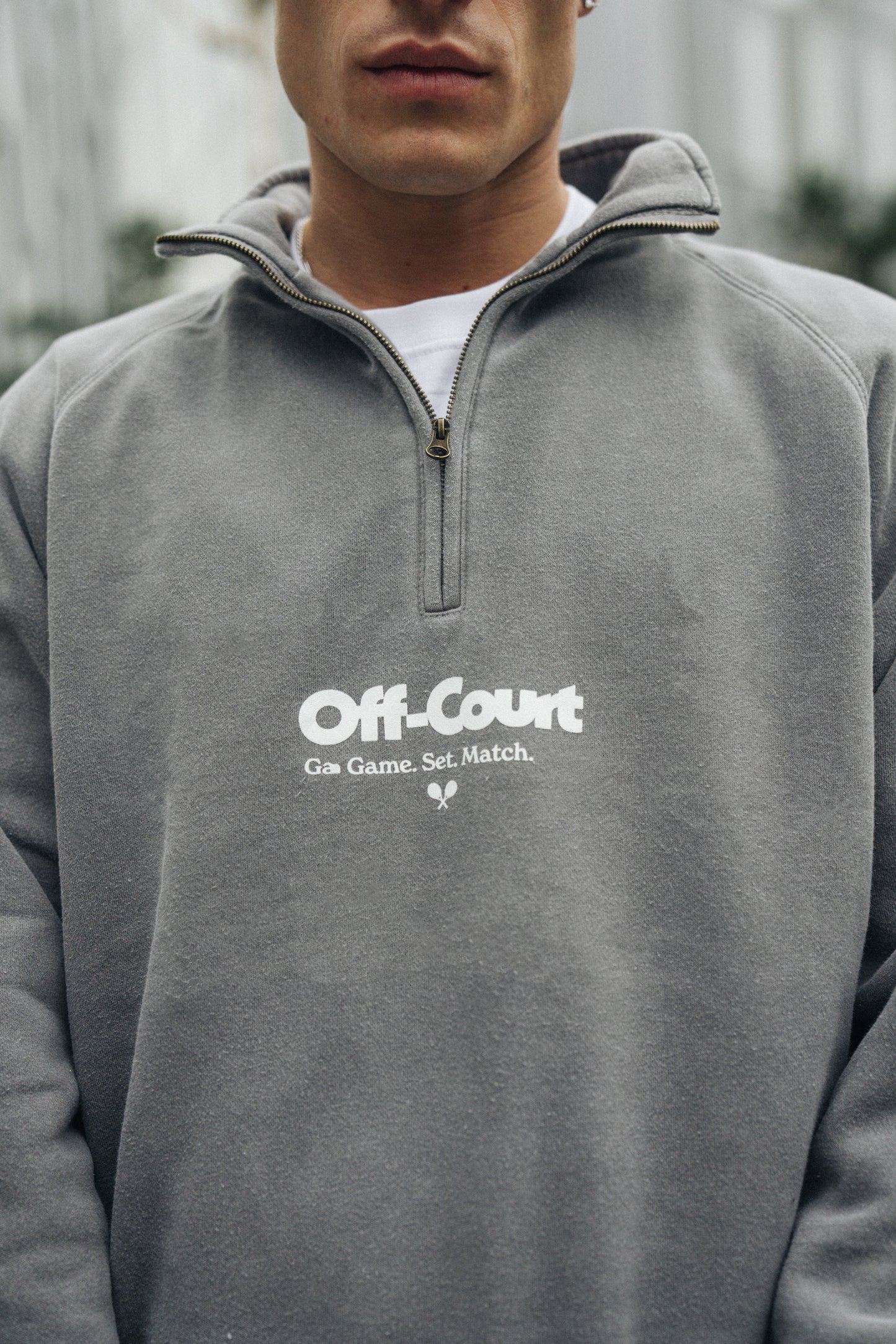 Vice 84 'Off-Court GSM' Washed 1/4 Zip Sweater - Charcoal