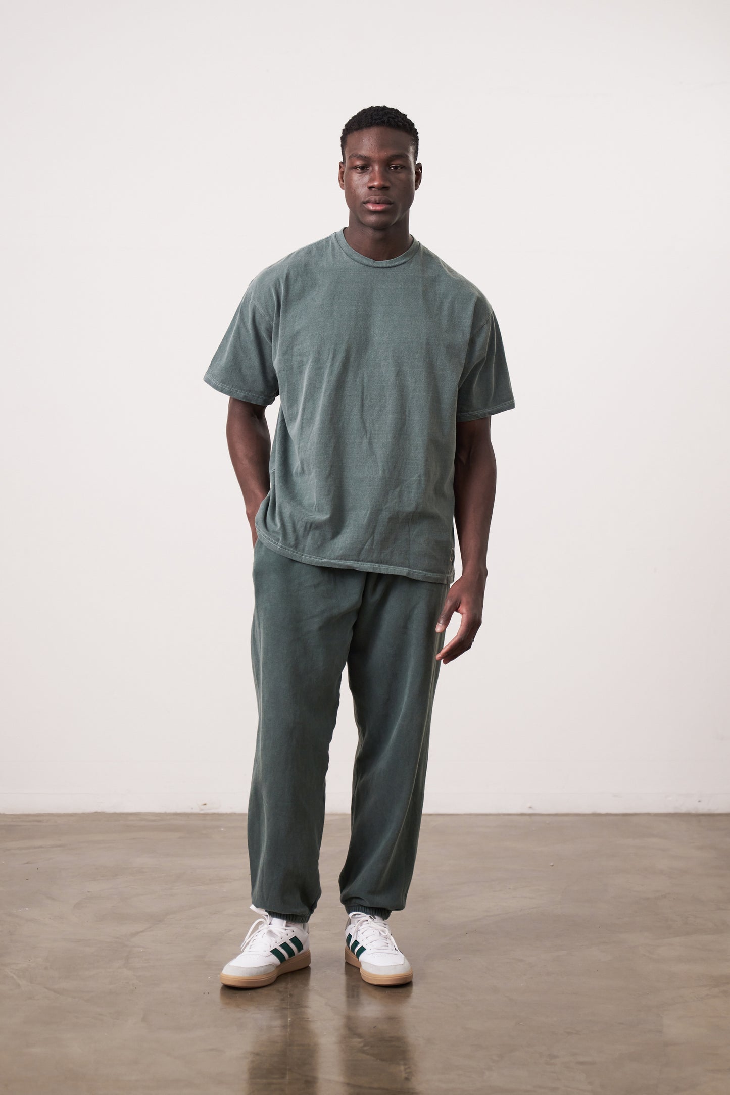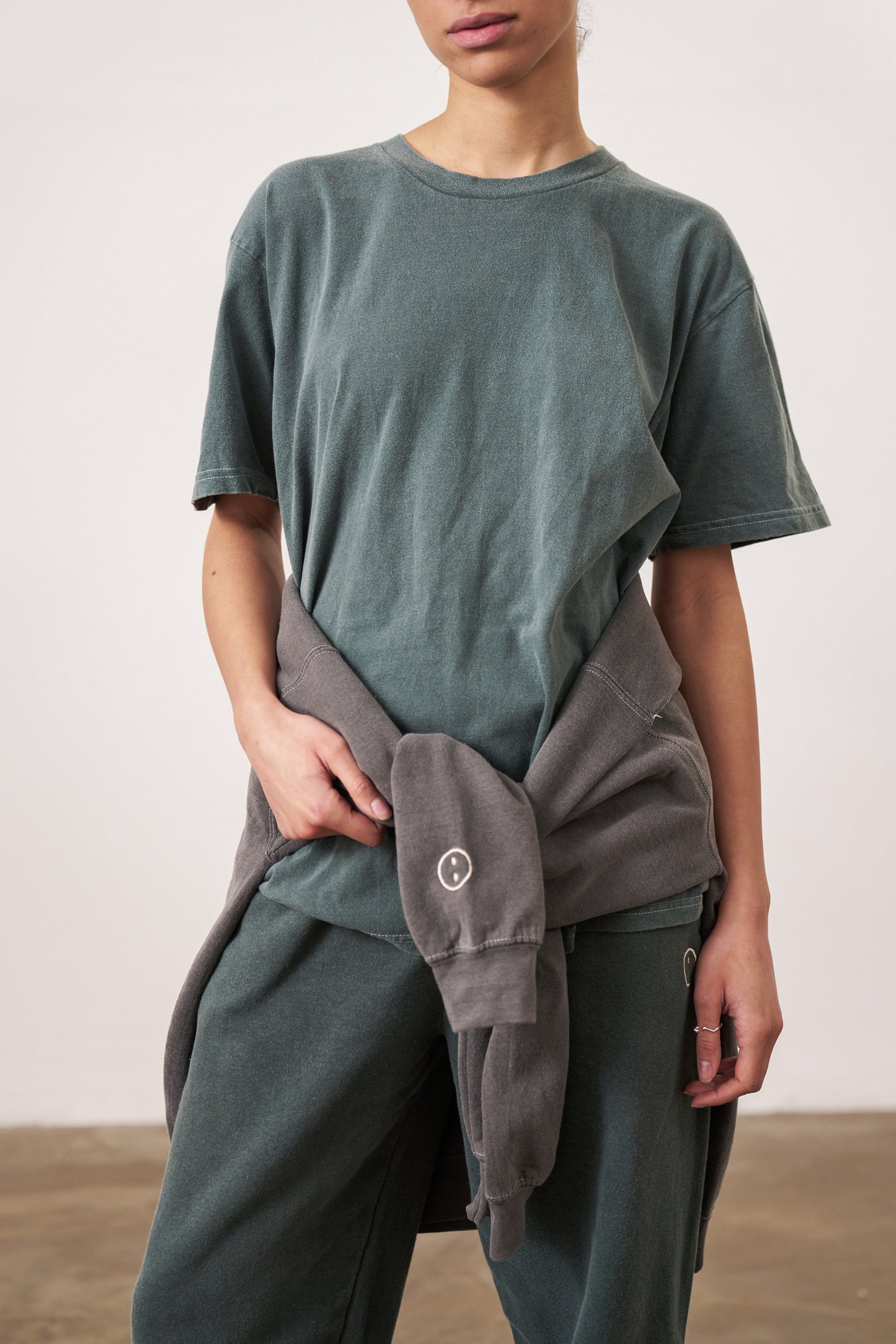 FABRIC: CUSTOM VINTAGE WASHED WITH OUR OWN PIGMENT DYE TECHNIQUE. 100% COTTON, 220GSM.