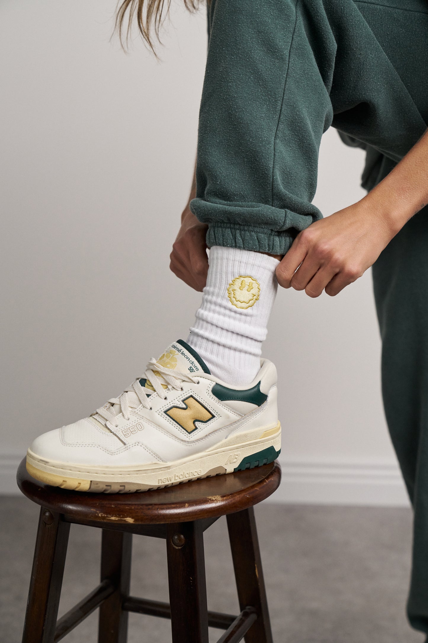 White sock with gold/yellow Seasonal Hero logo embroidery.