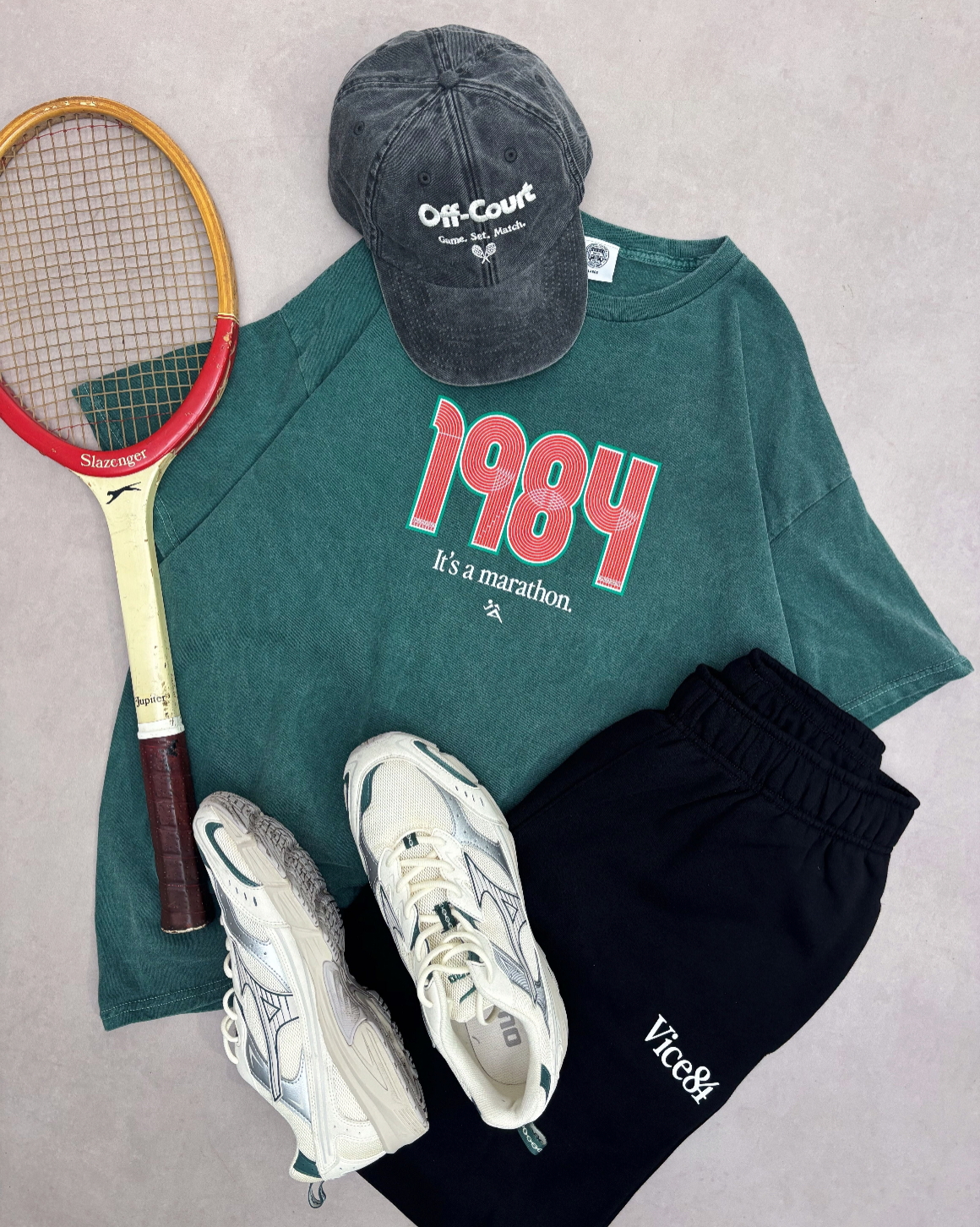 Vice 84 'Track' Vintage Washed Tee - Forest Green