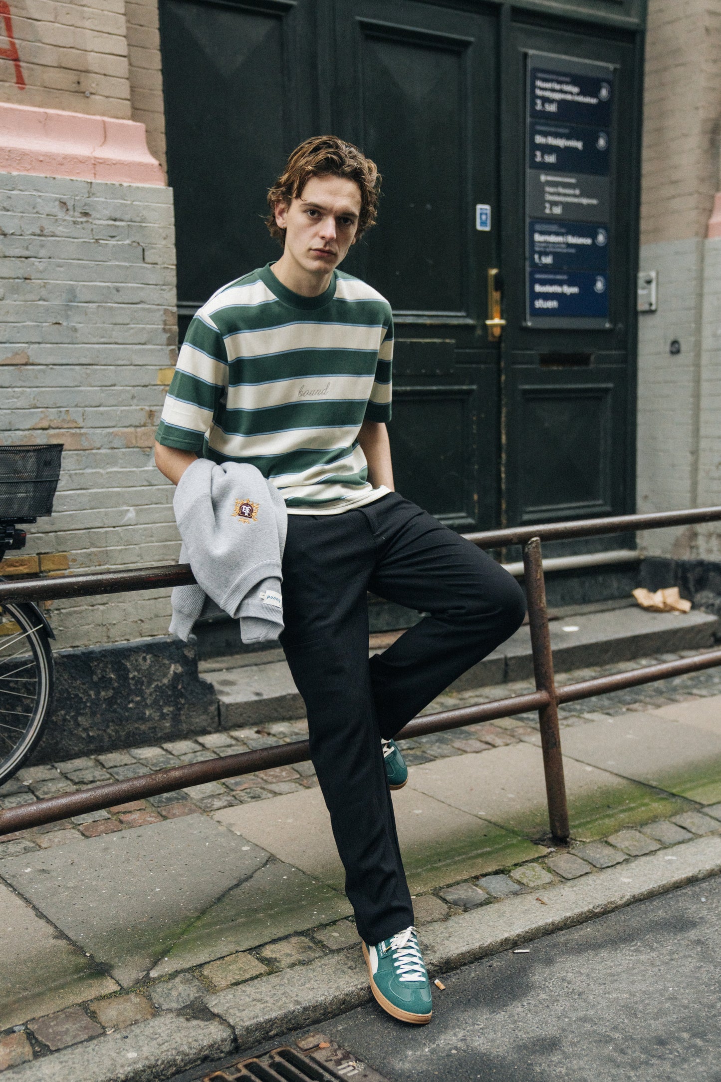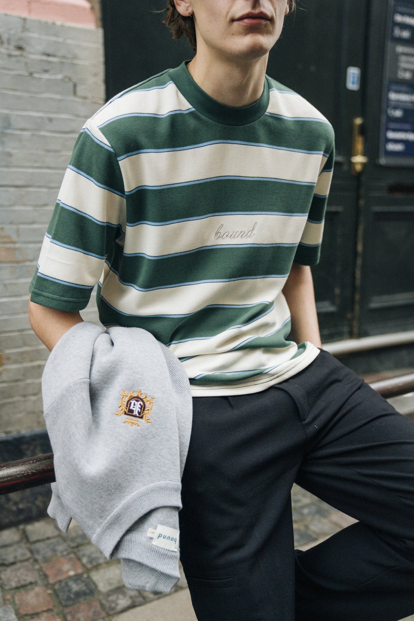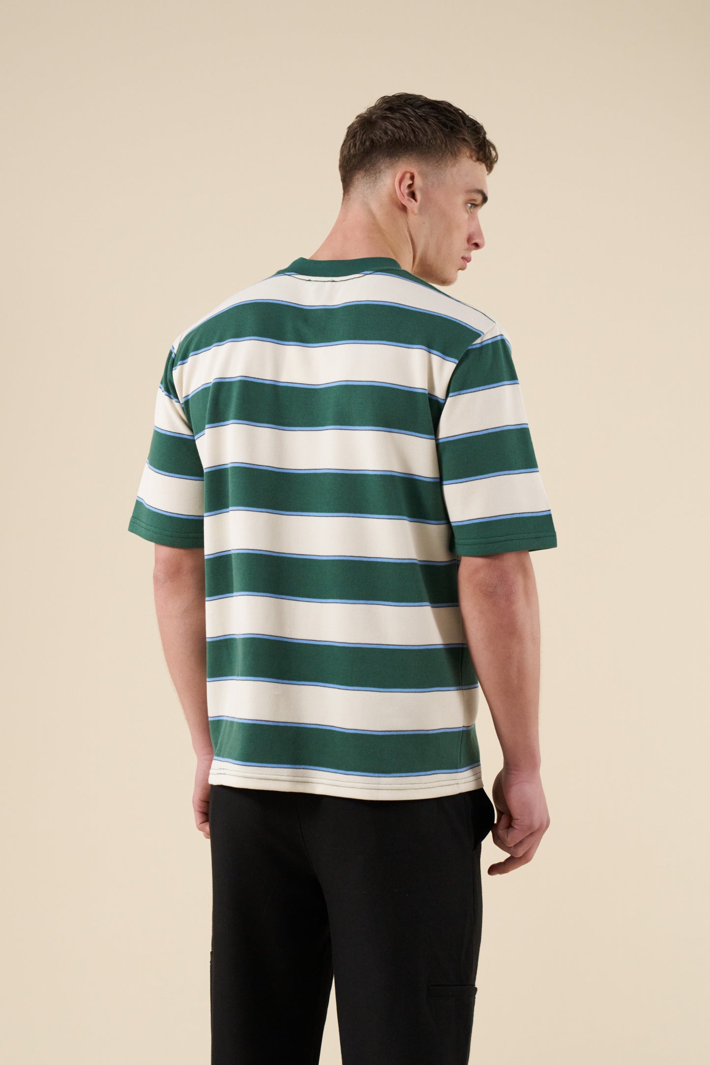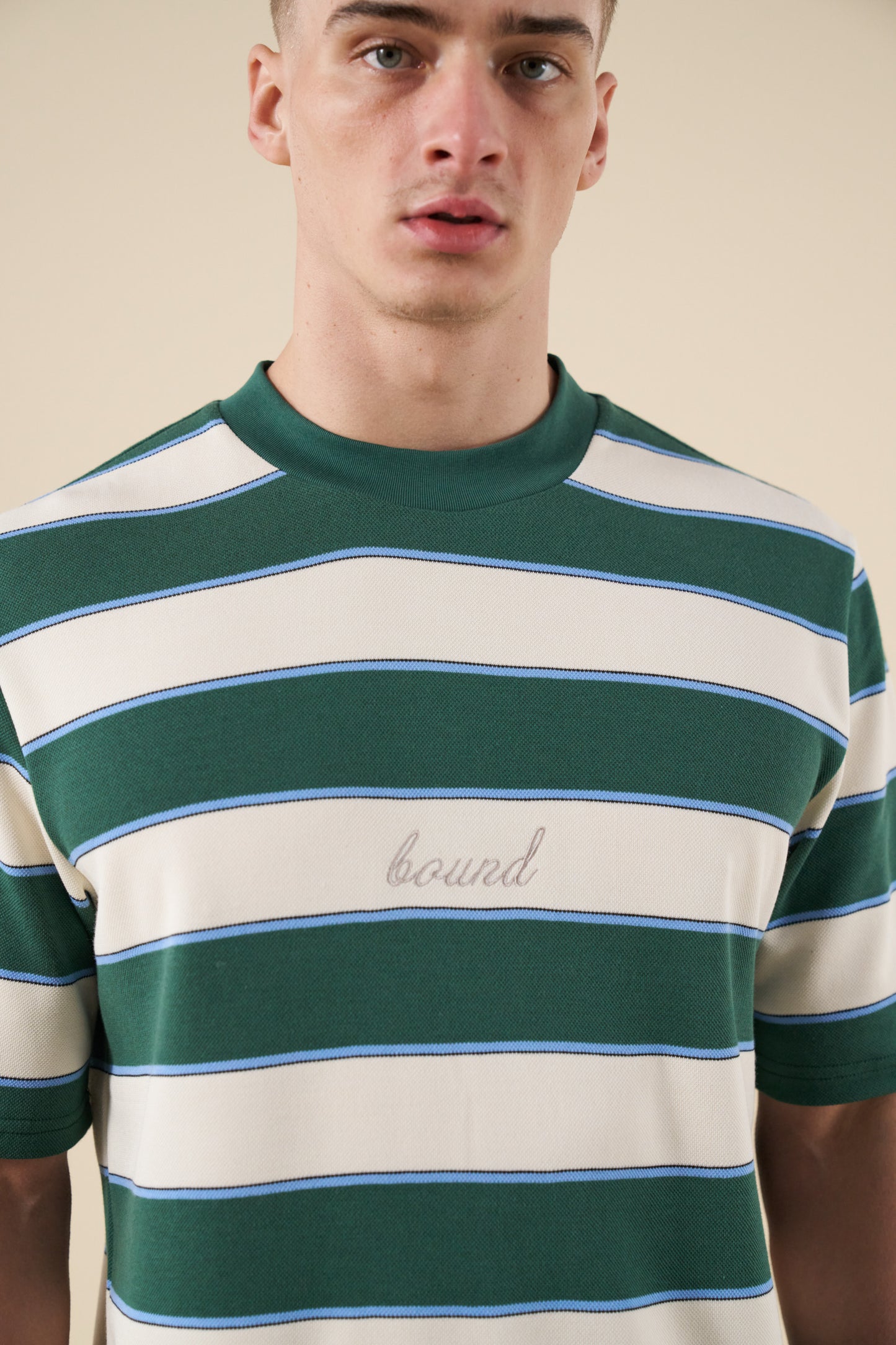 bound Pique Stripe Tee - Retro Green/Blue/White