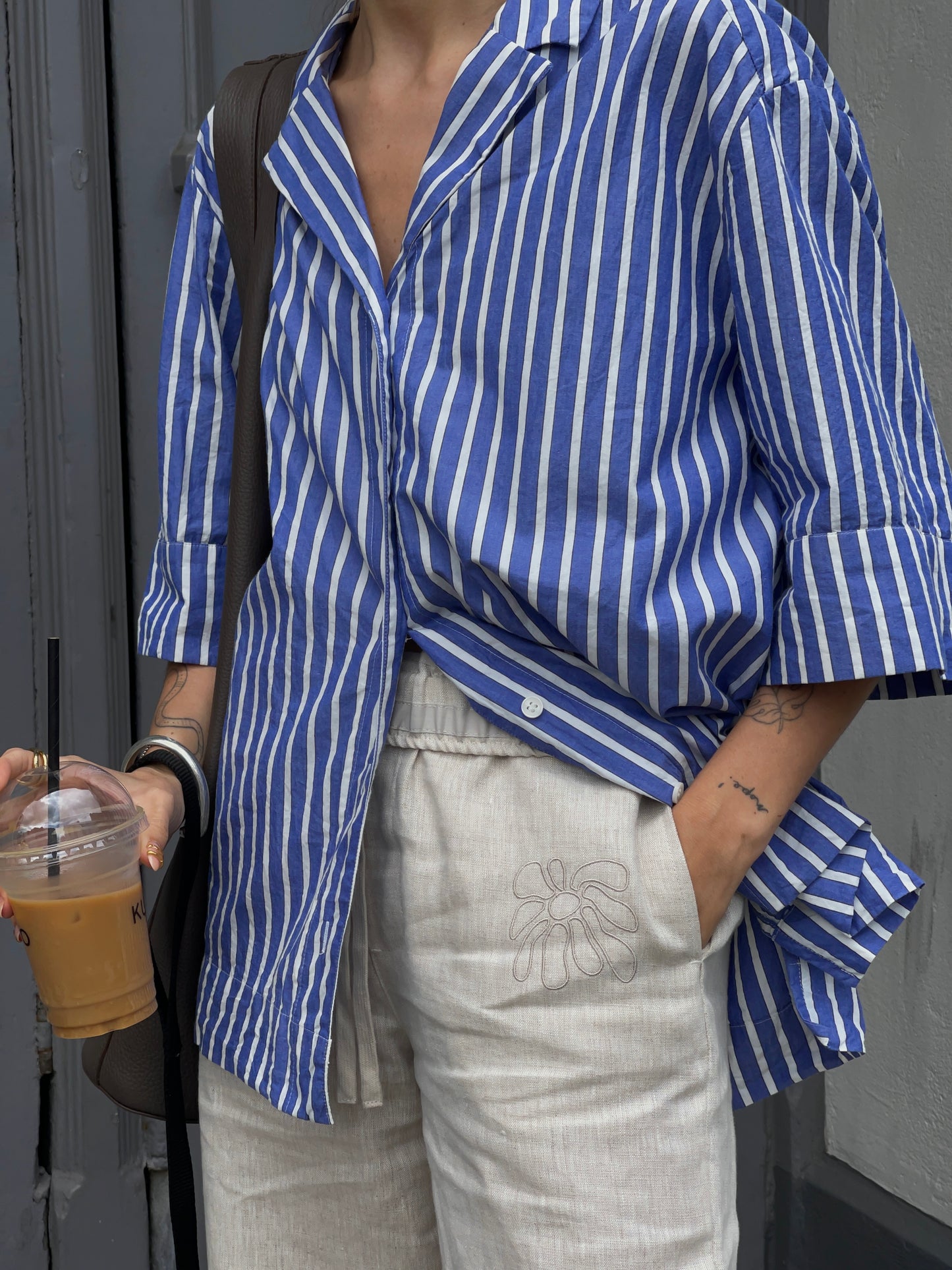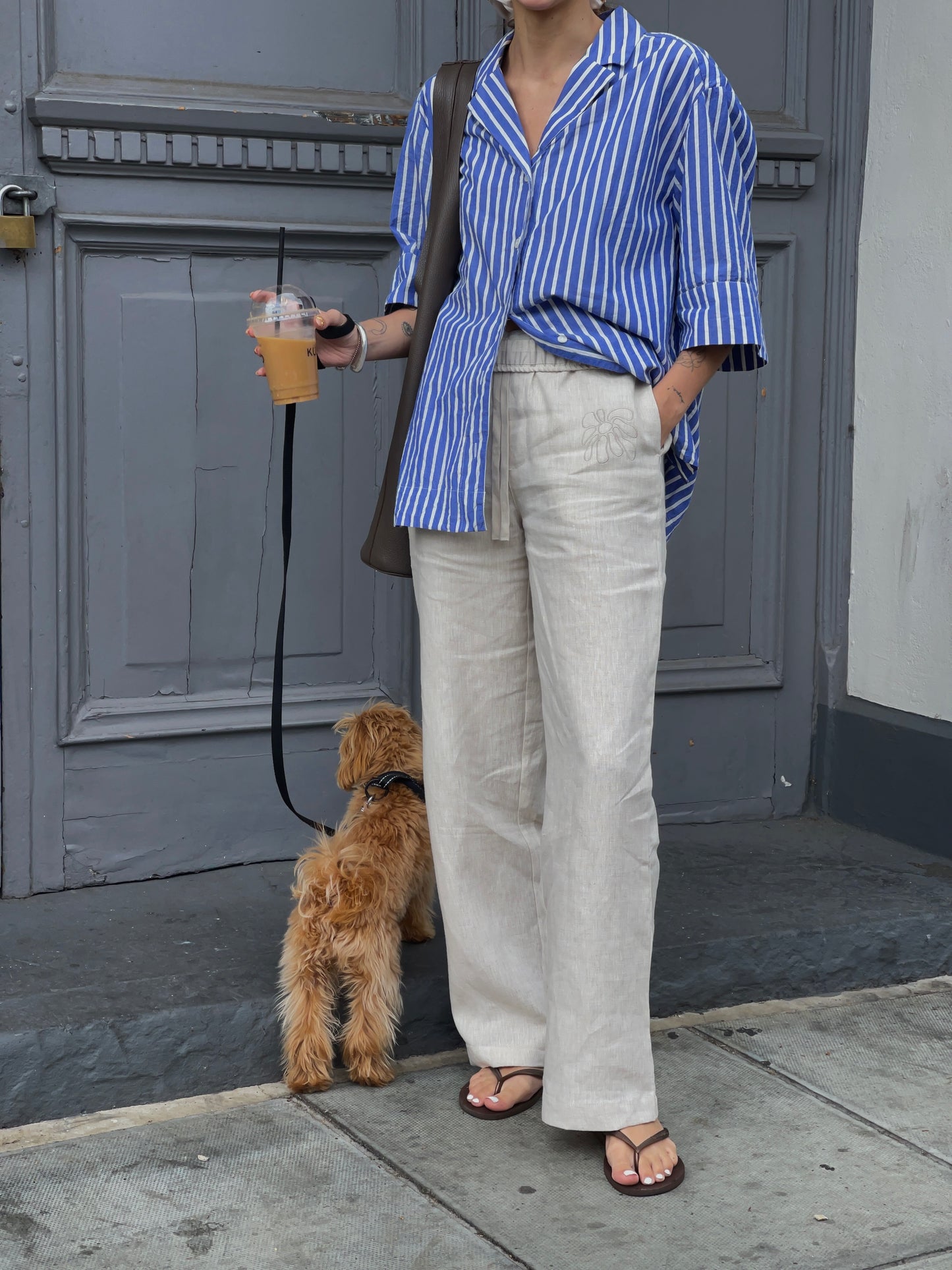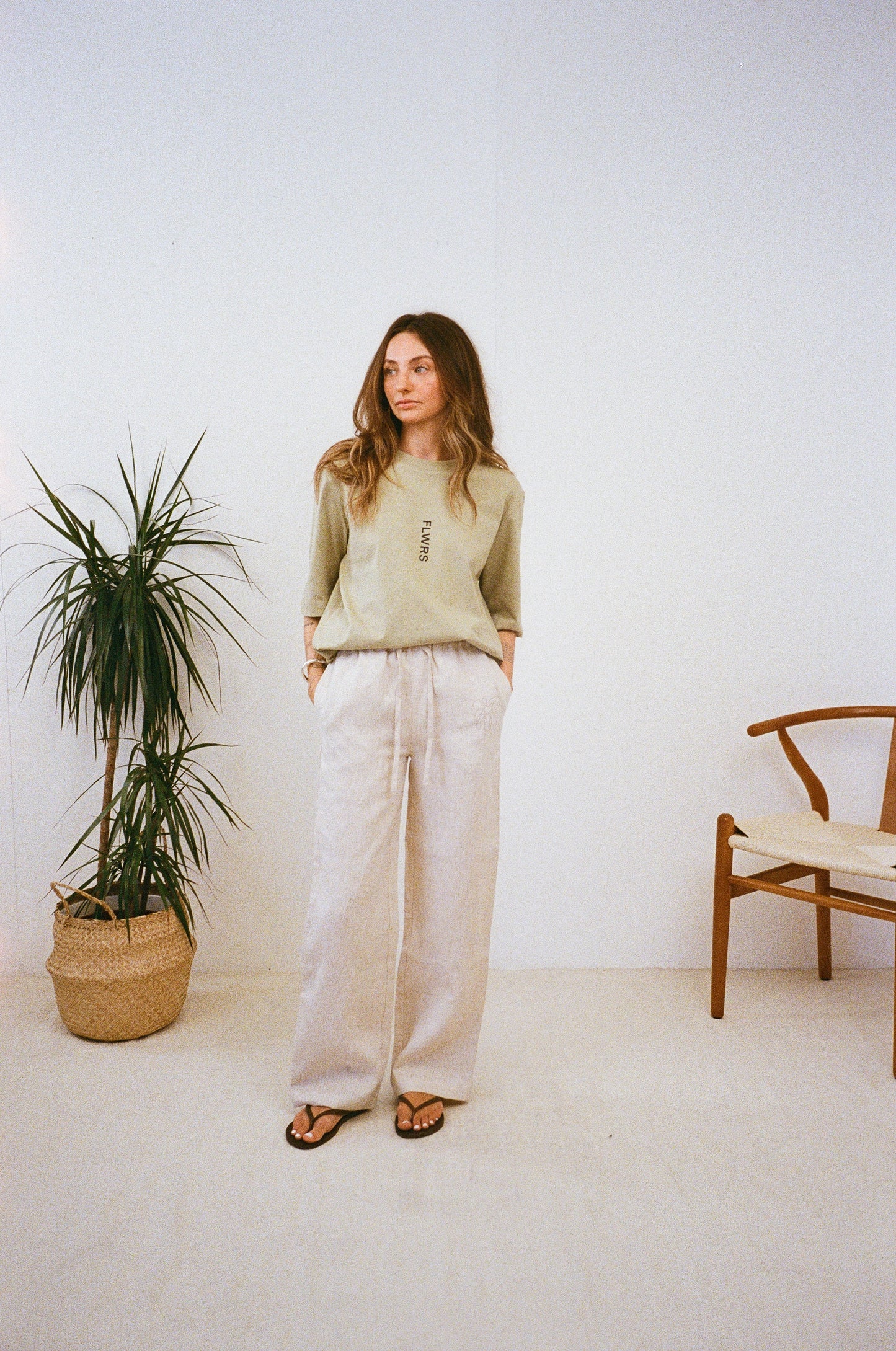 FABRIC: 215GSM 100% LINEN. TONAL DRAW STRINGS. SIDE SEEM POCKETS.