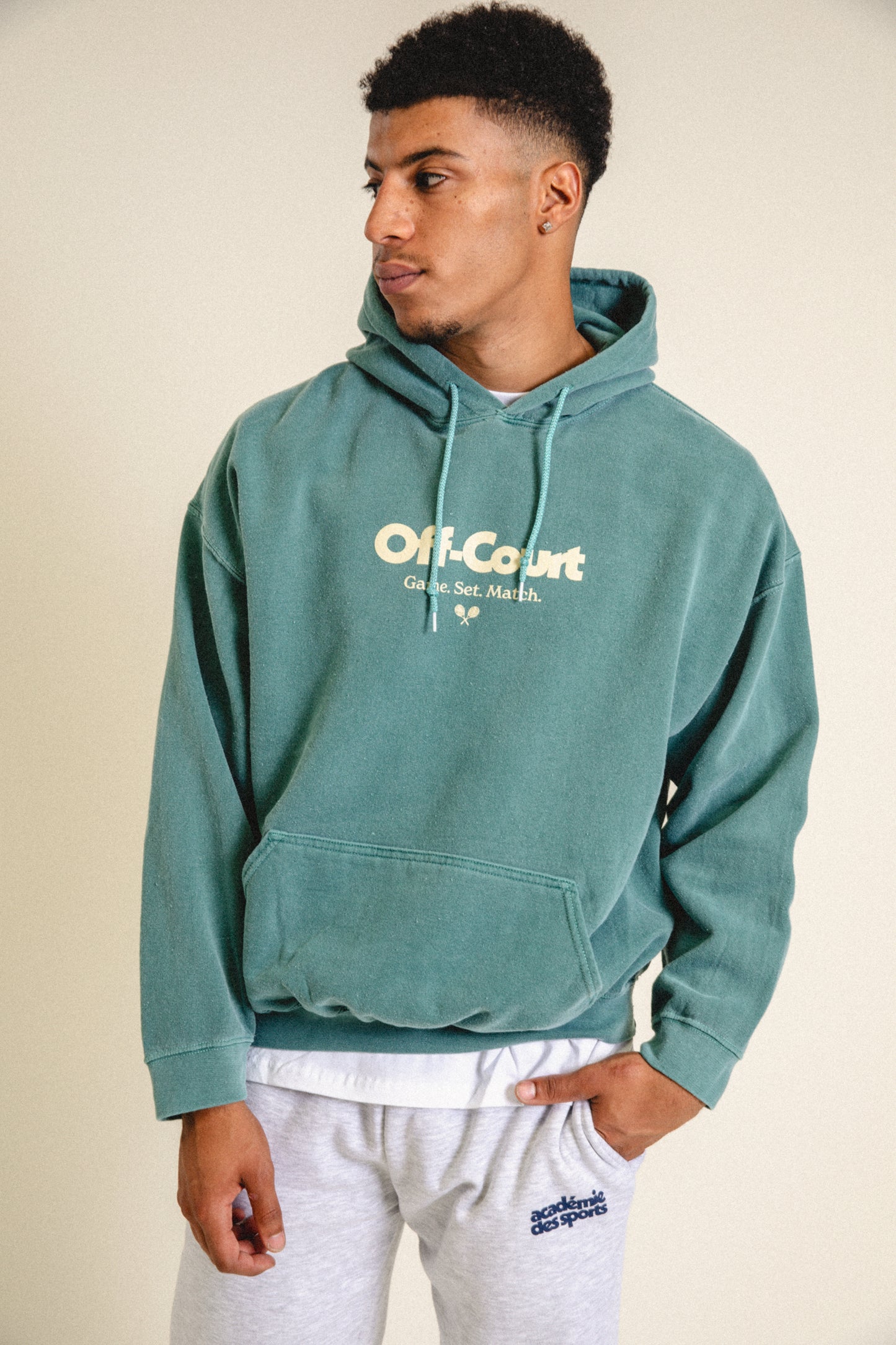 FABRIC: CUSTOM VINTAGE WASHED WITH OUR OWN PIGMENT DYE TECHNIQUE. 80% COTTON 20% POLY, 305GSM. PLEASE EXPECT SLIGHT PILLING AND VINTAGE EFFECT ON THE GARMENTS AS INTENDED.